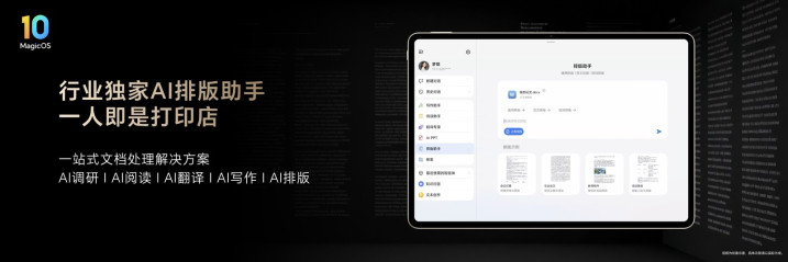 在MagicOS10加持下,荣耀MagicPad3Pro带来全新PC级办公体验,从PC级桌面、PC级WPSOffice到PC级文件管理,效率全面跃升。荣耀MagicPad3Pro内置AI文档智能体和AI会议智能体,不仅带来行业独家的一键排版功能,还能实时生成会议纪要与待办事项清单,真正实现会议无忧;而智能识屏功能可即时响应查询,让AI体验全面提升。
